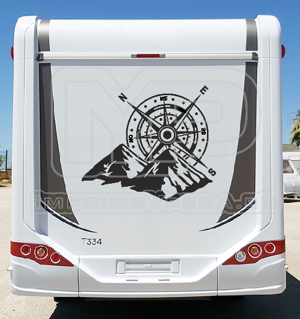 ¿Buscas Pegatinas o vinilos para decorar tu autocaravana ROSA DE LOS VIENTOS + MONTAÑA?