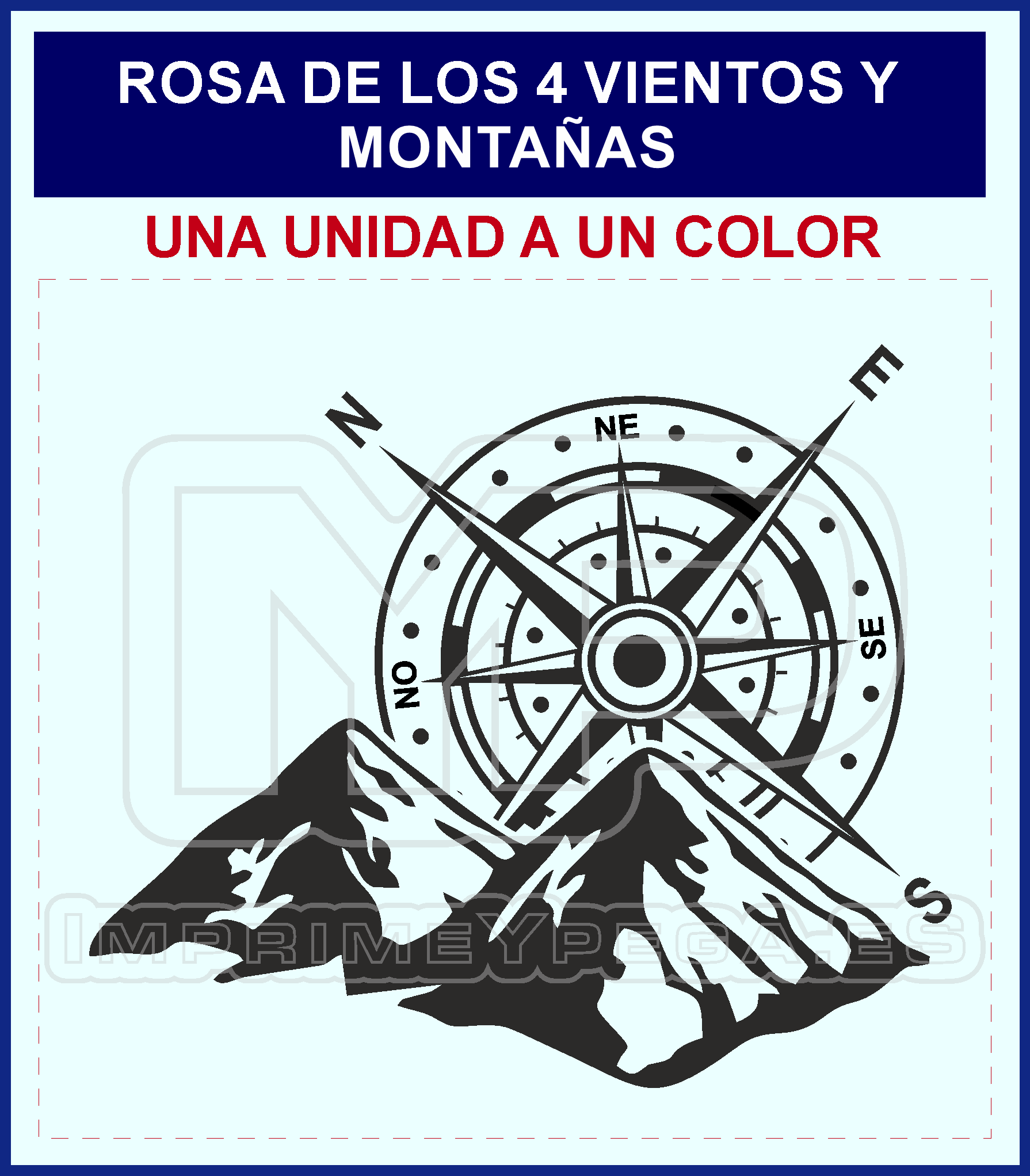VINILO de la ROSA DE LOS VIENTOS + MONTAÑAS, en vinilo de CORTE «Mayor duración» para decorar tu Autocaravana, caravana o camper. Disponible dos colores y tres tamaños. Entrega en 24/72hrs. ¡Visítenos!.