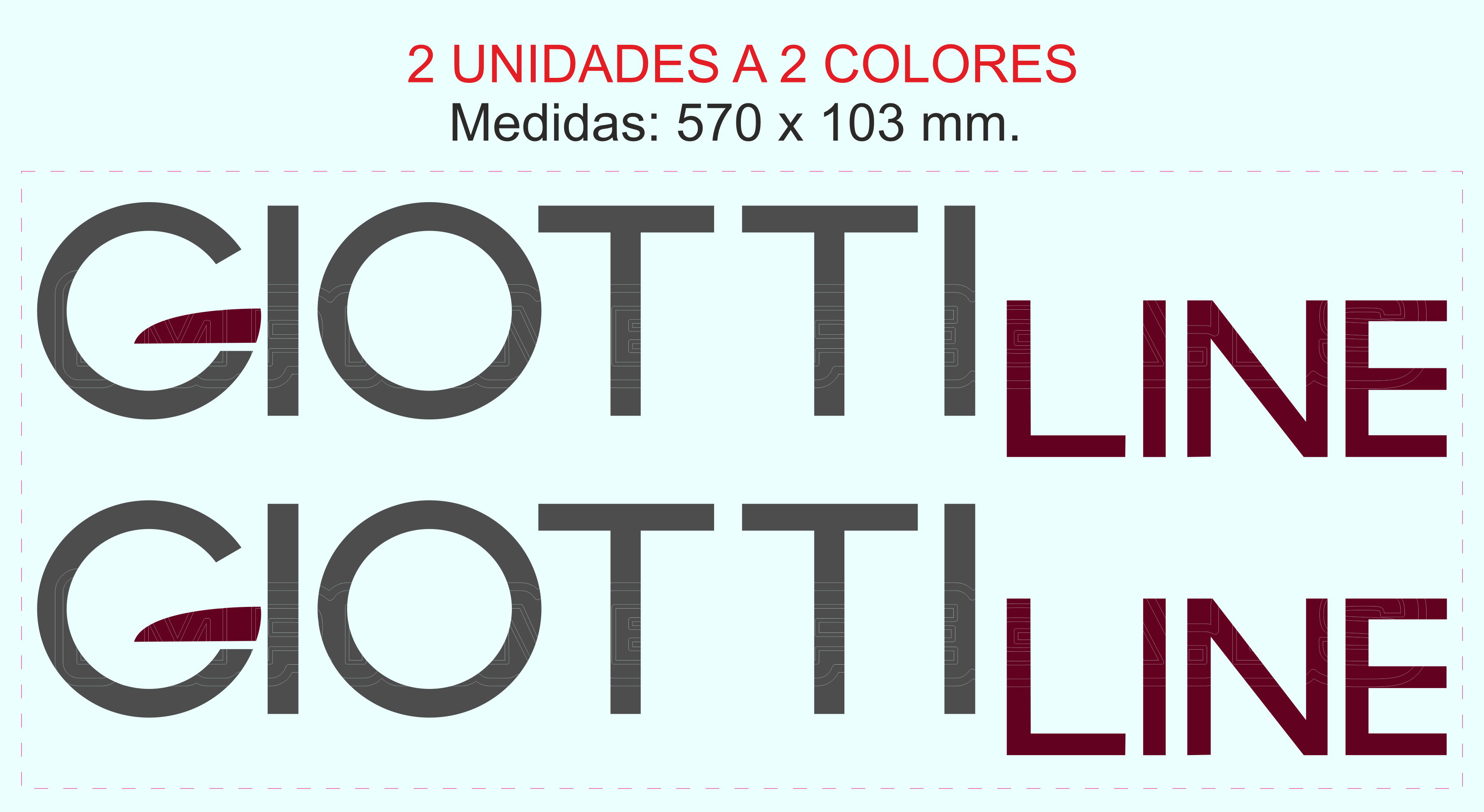 Kit de Pegatinas GIOTTI LINE para autocaravana o caravanas en VINILO DE CORTE «Mayor duración al exterior» a DOS  COLORES formado por 2 pegatinas: LOGO GIOTTI-LINE (57 x 10 cm.). Entrega en 24/72hrs. ¡Visítenos!.